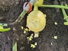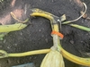 Of the 8 pumpkins I set on my 2069 Stelts about a month ago, only 2 are still living. 1 split & 5 others aborted like this one. Looks like the experiment of growing a bunch of pumpkins on one plant won't happen this year.
