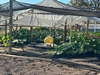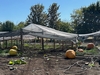 Here you can see the cables attached to a 4'x7' piece of wire fencing. I will start two plants side-by-side. I'll keep the better of the two & will cull the other. I put these plastic jack-o-lanterns in the spots where the seedlings will be planted, just as a way to keep it from filling up with soil that I will have to remove later. For some reason we have lots of these plastic jack-o-lanterns.