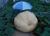 This pumpkin was a consistent grower all year and it did not disappoint in weight. Wish it had some orange color, (even though I was not expecting it) but we cannot get everything we want sometimes;-)