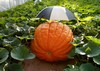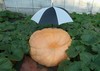 The pumpkin in the picture (my 2145 McMullen �15) is inside of a 5-gallon paint strainer bag which I use on all of my pumpkins to protect them from any potential bird, chipmunk, squirrel, or �other varmint� damage. I like these bags because they breathe so the pumpkins do not get to hot and also allow me to visually inspect the pumpkins and move them as they grow. The material is similar to insect netting so it also keeps bugs off the small maturing pumpkins. I put these on the day after (or so) I spray them with Anthesis.
