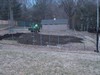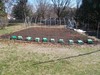 Sometimes the weather dictates when the heating cables should be installed and this was one of those years. The soil was dry enough and the day was relatively warm so today was the installation day. The white pvc pipe marks the side walls to the cold frame which are spaced 5 feet wide and 3 feet from each other in row. Soil in about a 5ft x 6ft area that is 8-10 inches deep is removed and then pitch forked to increase the drainage and aeration.