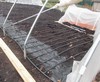 This is the pattern I use for my 40ft. soil heating cables that have a built-in thermostat. It is important to have the thermostat in-between two heating elements and about midway through the image the power cord can be seen on the left hand side for orientation. This pattern is held temporarily in place with bamboo stakes and it can be very helpful to let the cables heat up in the sun before trying to get them to lay in this pattern. If it is a cold and/or cloudy day the cables can be plugged in and allowed to heat up to aid in trying to reduce the frustration of installing them.