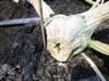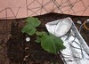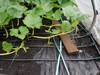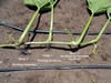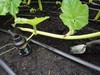 In this image there is a SVB (Squash Vine Borer) trap that is properly placed along with drip irrigation (the black lines). In addition the plant is exhibiting initial signs of water stress and has been vine buried. All of these little details can be selectively pointed out depending on the person you are talking with.