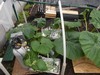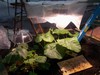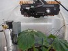 This shows the final set-up for my outside air venting system. If you look in the middle on the lower side of the shutter, you will notice an electric motor. This was connected to a thermostat that would engage the motor when the temperature reached about 85F. While there was no fan to assist the air coming in when the thermostat was engaged there were two vents opening at the same time as the upper vent and the exhaust fan would come on at the same time. This created a flow through of air that allowed for efficient cooling with minimal loss of CO2 that was being added to the environment below the pumpkin leaf canopy.