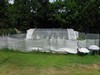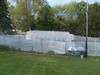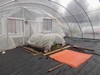 All of the structure hoops are up and work is being done on the end walls. However, this morning the steam off the compost can be seen as it starts to heat up from the sun which has just broken though some early morning clouds. The compost itself was finished and stable; this was simply the high amount of moisture evaporating after a quick change in temperature.