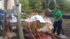 FINALLY, after almost 1 a month drought, we got some rain. No sheets on the giants today, just these homemade contraptions with plastic sheets to keep these fruits dry