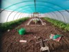 I've put a couple of lines of early potatoes in the poly tunnel, one on each side. Hopefully they will be all gone before the pumpkins require the space. I had the rotovator in here before I planted the potatoes so the manure is nicely worked in to the soil now.
