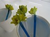 This is how you keep you males from getting contaminated. Its much easier than covering a dozen males in the patch. Put three per straw add water up to the base of the flower and bring it inside for the night. There are usually 2 males per vine that open each day. Look for the ones that closed today and pick the next two for tomorrow.