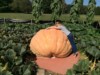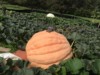 This is the 1805.5 zappa plant with pumpkin still attached and growing. She got a blossom end pin hole 3 weeks ago. I put caulking on it to hopefully keep from rotting , so that i can give it to a local pumpkin stand to display, and let the kids have fun with it.