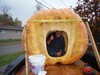 Day 8? Day 9?? Lost count.lol My daughter Liz has graduated college & is working at large day care center.This pays the bills till she finds a teaching job.She asked me to show the kids the pumpkin.They loved it several groups came out one at a time.One boy in this group yelled."take us for a ride"The other kids screamed " Yes Take us for a ride!!I told them I cant your parents would have kittens!!LOL Raffle sales almost $2200.I will spend these final two days 1st stop Spicers Orchard 5,000 people 2nd stop Holly Downtown trick or treaters over 800 kids.3rd stop Saturday night 6 to9pm 15,000 people in Howell Mi.Last day & drawing 6 pm Sunday at Spicers Orchard aprox 5,000 people constant coming & going.Monday I deliver the pumpkin or $300 cash.Im having a blast! extending my season 10 days!