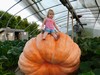 The 2043 Clementz with Baby Bubbles Macy Rae! Day 42 # 2 Pumpkin at 500 lbs this one at 870 lbs estimated . 2 on 1 plant