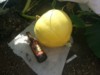 Even Flat Norm, travel size, came down to inspect the orange...prior to this photo he had his shoes and socks off to judge texture, density, and dance-ability. (Thanks Bart for the pict)