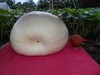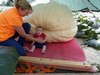 Used one of Lee's lifting rings. Notice that the straps are long enough so that they don't squeeze the pumpkin which will at the very least bruise it.