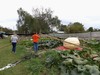Yesterday we had dime sized hail and very high wind, tornado warning about 40 miles NE of us, and were out of power for about 4 hours. We had the hail net deployed and it did it's job. The wind broke one of our apple trees off at the base (5 inch trunk), blew another one over (7 inch trunk) and snapped one of the high tension guy wires on the hail net. We spent an hour on damage control reinforcing hail net and making sure the rest of the night the plants were safe. Today, we put the hail net away (pictured) and prepared for the cold night ahead.