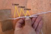 Steinfriend�s belt works. The first day was a bit disappointing, it looked like the fruit had stopped growing, but in fact the string had to develop some tension first. Thereafter, it was possible to watch the fruit grow. Here you can see the spacing between the first knots (3 days in between and, because of the aforementioned reason, worth two days of growth), and it was fun to check the knots again this morning to see that growth continued nicely overnight.