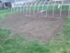 here is the patch with the hoop house frame. I am going to start the pumpkin as close to the corner as possible so the hoop house extends outside of the boundaries of the 150 sf a bit.