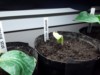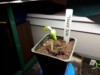 The 2350 Gienger had problems getting out of the shell. After 6 days in the dirt, only the stem was sticking out of the ground. It had been that way for two days and didn't seem to be advancing so I gently extracted the plant out of the shell. The ends of the cot leaves are damaged and sort of fused together. I will give it another day and see if it can open up and start growing but I am feeling that I may need to start my backup.