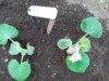 The two Montsma plants in the ground. The one on the left is the front runner at this point. I am a little disappointed with the lack of vigor at this point but I think that can probably be attributed to the soil being two wet. Now that they are in the ground hopefully I can get things evened out and the roots can move out into the patch.
