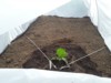 I planted two of the 1263.5 Montsma plants in the patch today. They showed fairly good root growth for plants of this size. I used soil from my patch when I transplanted them into the bigger pots. The new soil holds a lot more moisture than the soil at my old place. These have been in the pots for a week and a half. I watered them twice during that time and the soil was extremely wet. There is going to be a bit of a learning curve as I figure out the correct amount of watering on this new patch.