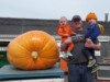 All the pumpkins in a line. The one next to mine was the winner from Joel Holland at 1614 pounds.