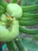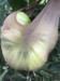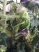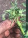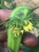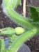 It is really hard to get a picture of what I am seeing. This plant has one big ribbon blossom coming out. The point of the pen shows where the flower starts. I am thinking this blossom is going to be difficult to get set. Leaf and vine growth is very deformed.