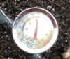 Took a few temperature measurements today----stuck my thermometer in the dry soil at the edge of the patch, outside the misting zone and the shade cloth.