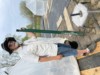 Here we are post-move. Alexis was absolutely no help, ha! I am holding my Big Red cablepuller (come-along). I don�t recommend it. Not easy to use. The owners manual has very poor instructions with missing diagrams which is the same as their website. Note to self: fruit & vine positioning is paramount. Also, inspect stem & vine position & tension at around 500 pounds�moving it would be much easier!