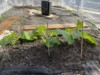 I finally have some small fruits that look like they might take, situated beneath the white washcloths.