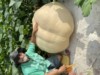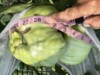 I tracked down Jim & had him show me where he had taken it. So then I went dumpsterdiving & got my fruit. There was a damaged spot at the bottom of one of the lobes which had been facing up-looked like where a thumb had been!