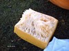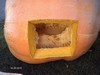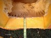 This is one of my pumpkins that rotted at the blossom end. I hope to avoid this from happening again. This is the 39(est) 13 dmg, crossed with the 312 weibel x 695 Johnson. The white stuff is biomin calcium powder; tried to stop the rotting, but did not work. ??