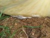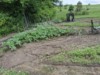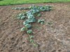 Melon patch. Didn't get the cheap landscape fabric covered in time and the sun rotted it quickly. Will have to deal with some weeds now. In the patch are 197 Harrington x 2, 187 Harrington, 146.5 Young x 2, 265 Williams, and 242 Wolf Watermelons along with 52.4 Harrington x 2, 61.85 Davis, 56.74 Davis, 71.5 English, 56.2 English, 69.6 McCaslin, and 64.7 Terry Cantaloupes. Put a little more effort in garden amendments this year which has drawn more worms into the garden. Downside is that they drew some moles which damaged the roots killing a 277 McCaslin watermelon and severely set back one 146.5 Young and one 52.4 Harrington.
