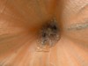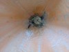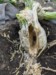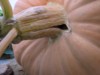 On the 1832.5 I noticed a wet spot by the crown and investigated. My finger ended up going into the stump due to rot. So some surgery was required. First I dug out easily-parted rot with my hands, as well as soil around the stump. Then I used a paddle bit on a drill and a knife to cut a big slot in the stump and used an old spoon to scrape away rot in the inside. Sprayed with hydrogen peroxide and then put a clear cover over the stump (not pictured). I'll keep monitoring, but I'm not worried about it as the pumpkin isn't going to last long anyways. But good practice!