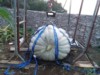 I lift the pumpkins with a series of adjustable straps, a chain hoist and an in-line scale.
