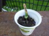 220 Baggs marrow seed germinating. The first 220 seed I started is probably a dud since it hasn't germinated.