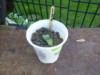 122 Lyons (220 Baggs X Self) marrow planted yesterday in 4 cubic feet of 50% composted cow manure and 50% compost. Temperature was about 90 degrees when picture was taken.