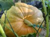 My 1349 is 59 days old and putting on 14 pounds a day. This was a July 31st pollination and the plant is still in good shape although I'm still impressed with those gains for this late in the season. Notice how the secondary is back up against the pumpkin. She is cranking. Only 14 days until the Frerichs Farm weighoff in RI!