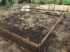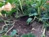 Covering hay with dirt. I planted about 5 lbs of small potato sets in all the gaps between the hay bales. A few are visible in the previous picture... if you look really close!! It took three entire rotted bales to cover the 150 sq ft, and around the perimeter also.