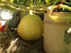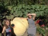 334 House looking GREAT. Will not cull one instead will leave the second as a "for her little sister" pumpkin. Growing two plants out of the same pot worked fine last year.... 2400 lbs of pumpkins!!! I don't have a dump truck load of goat manure mixed with alfalfa (then left to compost for 2-3 years) to plant into this year, though, so it will certainly be a challenge for me to be that successful again.