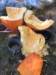 Clockwise from top left: a pale one from one of my 1122 Emmons progeny. 1114.5 Minor (now the 387 Clayton) still attached to its vine. 1223.5 (x 811.5 Schweigert) Gansert very good color (121.5 Est. Clayton) A remnant of the 1462 Gibson. 705 House color is about the same as the Gansert both traffic cone orange color got more orange after sitting a couple weeks. Volcano carved into a pretty little 462 Clayton x 1775.5 Sperry (46.5 Est. Clayton). Lastly in the middle 229 Boyd (22 Est. Clayton)