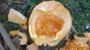 1462 Gibson x 1415 Haist. The Haist started white and is pink/yellow now. Most if not all of these seeds are duds. Only about 30 appear to contain much. Huge seeds not much in most of them. 32 DAP was very early to remove but it was still a good solid pumpkin for three weeks afterward.