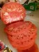 Bottom. I guess it was quite a bit catfaced. Oh well. Very solid feels heavy. The color ended up more pink than red. The others feel heavy too but let's see what this one weighs first. I already entered 3 or 4 early tomatoes. Maybe we are allowed 3... or 5? I'll have to check.