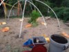 Got plastic up over the tomatoes. They've been outdoors up until now. Sunflower and beans are both up at 13' which is the height of the metal trusses. Put fans on the tomatoes a couple weeks ago. I don't know if its necessary or helpful but I am just blindly following Mr. Sutherland on this. I'm not into being a sheep about everything... but maybe its worth a try.