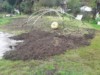 The rain is cold (50's) but am hopeful that if I allow the rain and dampness around the plant it will inspire the worms to do their thing. Six barrels of grass and half a truckload of dairy manure so they've got a lot to eat. I want them to get busy!