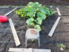 150 sq ft patch. 25' x 6'. Planted out the 1955 Werner. Starting to vine, healthy looking seedling. 1585 werner is alive but first few true leaves are off. Will see if it grows out of it.