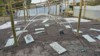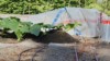 Fall rye seeds are sown and then covered with ReMay. This helps in keeping the patch from being a giant bird feeder and helps germinate the seeds a bit faster. You can see that the grass lifts the ReMay as it grows. Bricks are used at the edges to hold the cloth down as it is so light that slight winds will blow the ReMay off.