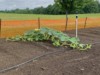 Picked off 6 pumpkins so far at about 6-8� mark in last couple of days. Plants are averaging about 12� a day on main vines, should be pollinating by next week if weather cooperates. Planning on setting up wobbler heads tomorrow. Also planning on marking the 150 plant out. Also transferring 2 more cantaloupe and one more Watermelon outside to patch, I will fence these in to hopefully keep coons out!