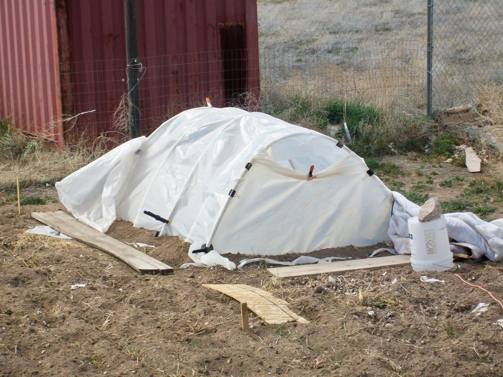 here's our test hoop. and the 150 sq foot contest area,, 9 x 16 + 144.. gives a little leyway, fer mistakes,, space heater,, in hoop 25 average outside temp,, inside average 66 temp in the mornings,, day temps.. 78/80,, in the hoop, i believe it will get seedlings in a few days,, hehe