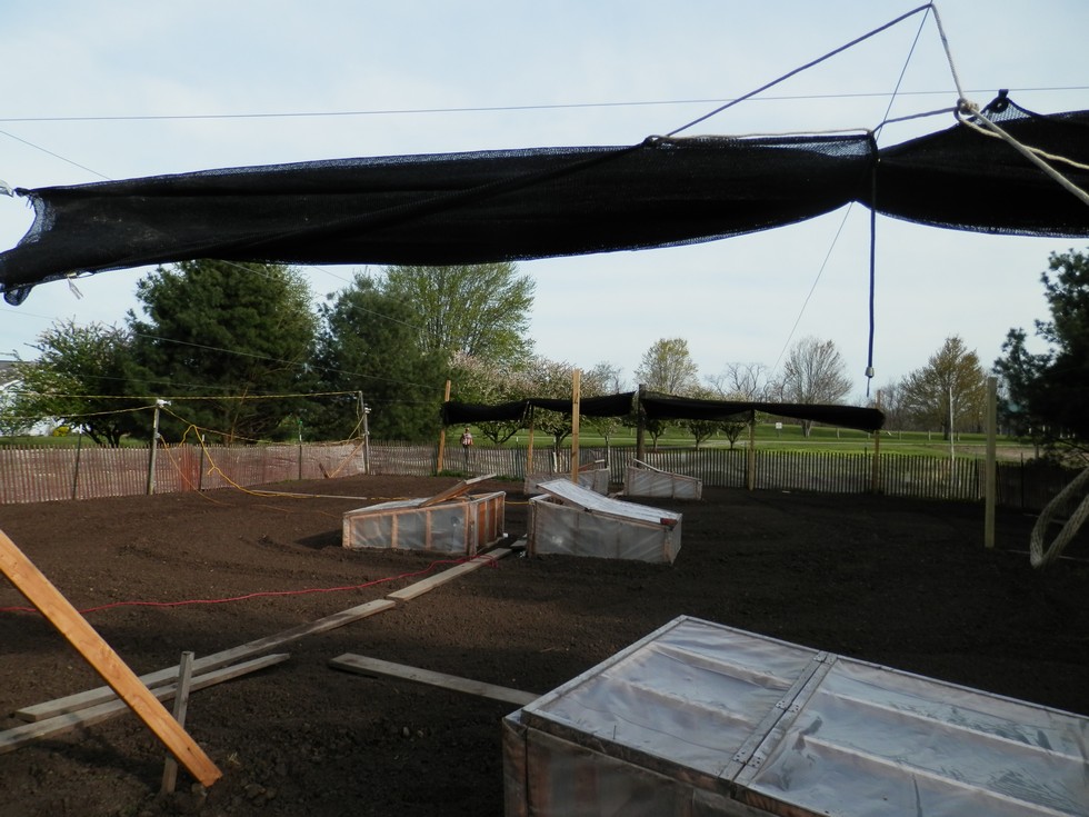 hail/shade net installed and stored, waiting to be pulled. One person can cover 40 x 70 in about 3 minutes.