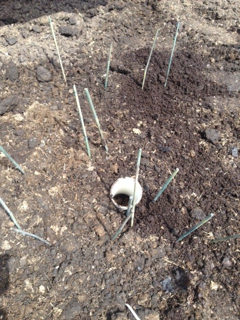 Backfill with Compost and soil mixture, remove stakes and repeat 11 more times. Done