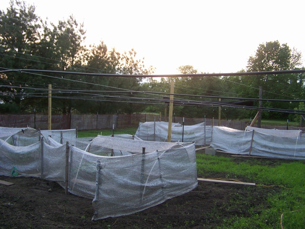 Spent a few hours installing the misters in the patch today. Misters are 3.5 ft apart on lines that are 6 ft apart. 3 lines per zone. Controlled by a timer that can turn them on and off by minutes. It's been in the high 80s several times in May already. I have a feeling we are going to be needing these for the summer.